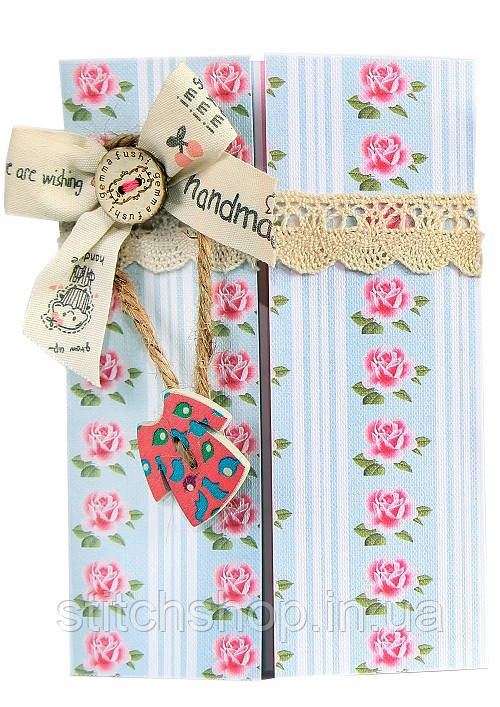 Handmade листівки — це не тільки захоплення хобі, але й можливість порадувати та здивувати своїх близьких, виготовити дизайнерську річ своїми руками. Набір для виготовлення листівок ручної роботи (повне збирання без вишивки) укомплектований усіма необхідними для творчості високоякісними матеріалами та докладною інструкцією. Декоративні матеріали: стрічки, бантики, ґудзики, мереживо, тасьма кріпляться за допомогою двостороннього скотчу, який також йде в комплекті.